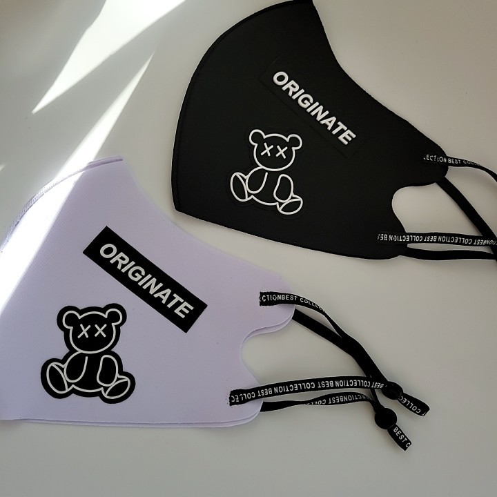 アニメのかわいい熊のマスクの男女の潮の金の韓国版の漫画の歯のオーダーメードのlogoは防塵の純綿の通気に乗ります。