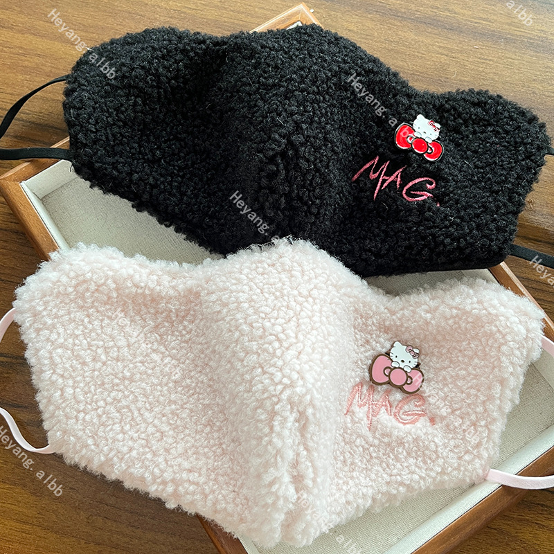 新型秋冬保温マスク女性高颜値子羊パイル防風防寒快適通気マスク騎乗顔保護