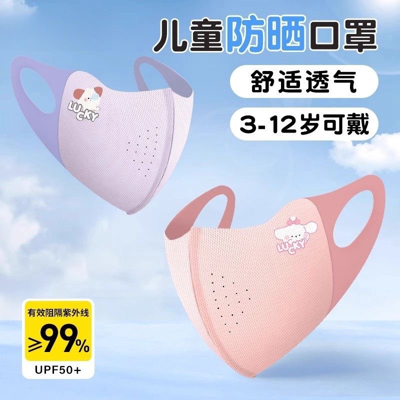 ファッションかわいい子供マスク防風通気アニメ3d立体無痕氷糸日焼け止めマスク4-12歳子供