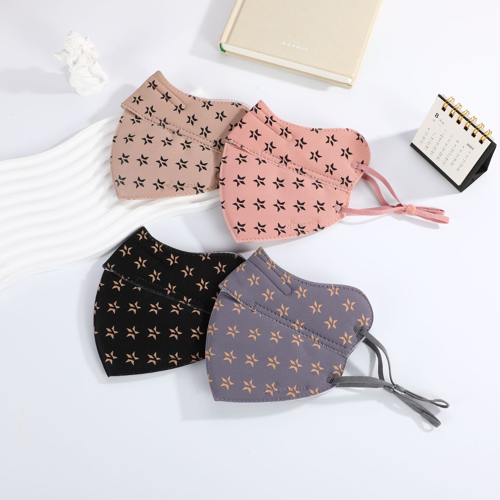 新しい五芒星プリントマスク、アウトドアサイクリング用防塵厚手マスク、秋冬用保温開口型マスク