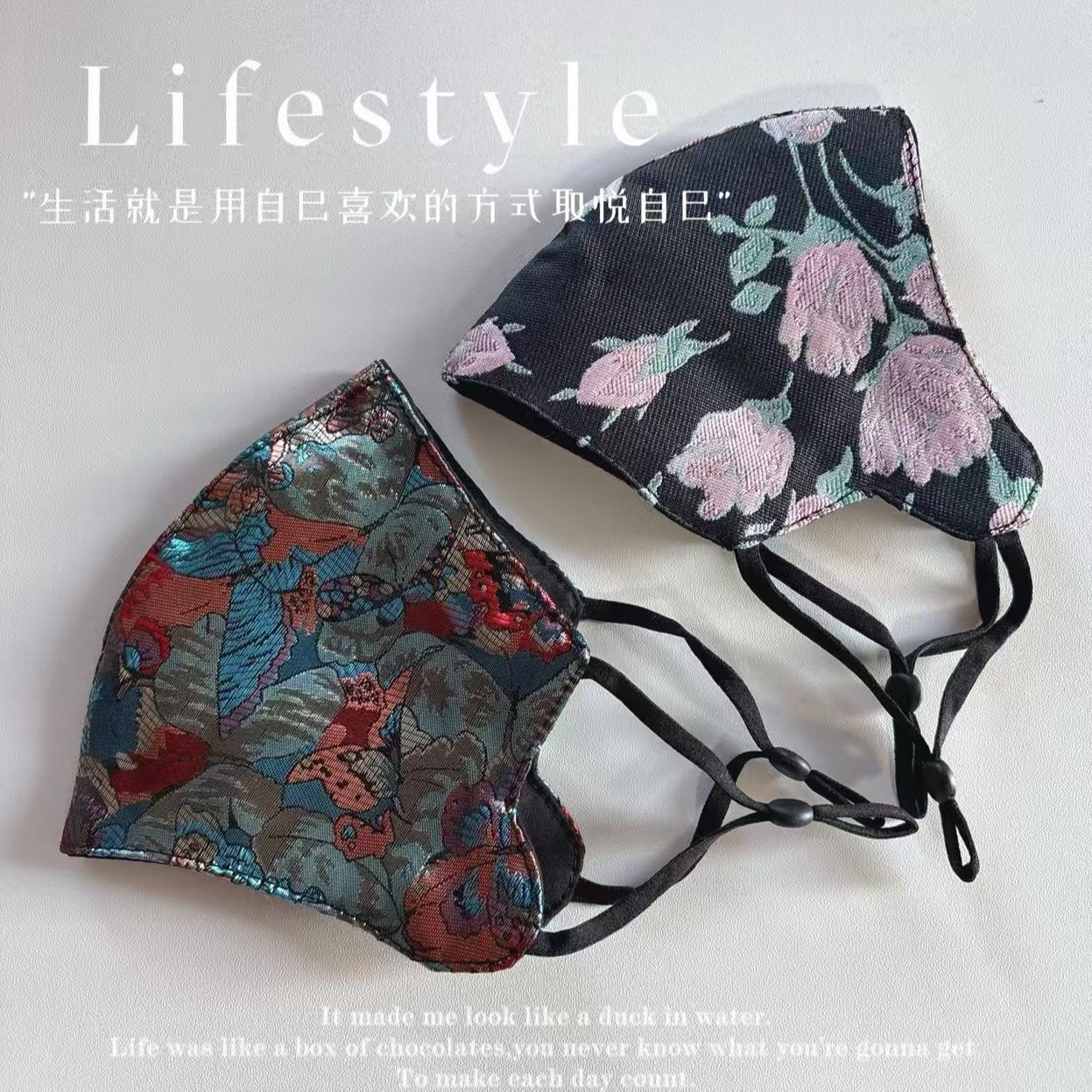 サテン国潮重工マスク秋冬防風保温マスクファッション蝶チューリップ刺繍マスク水洗い可能