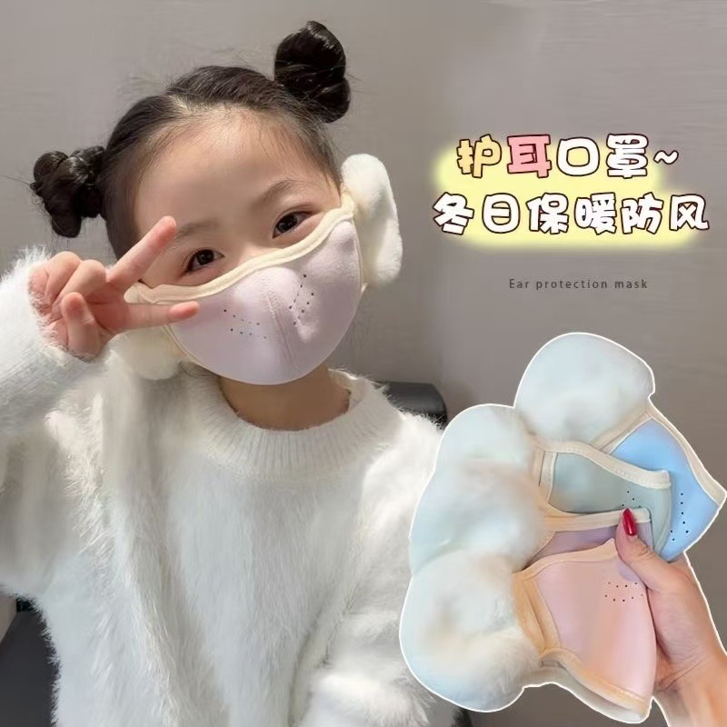 保暖儿童护耳口罩纯色透气立体男女孩学生护耳套加厚防寒毛绒耳罩