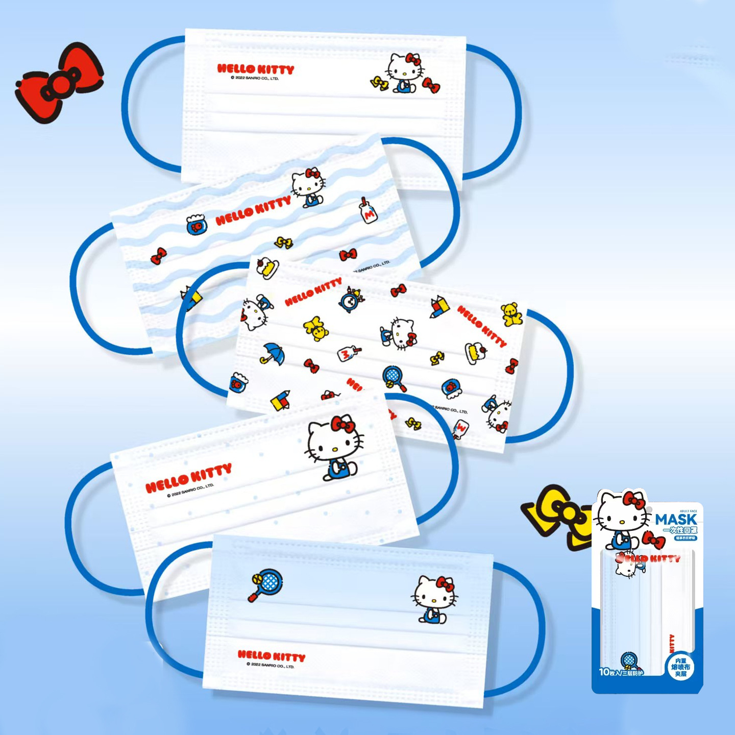 サンリオ純正 使い捨てフラットマスク ハローキティ ブルー かわいい漫画プリント 高見え 通気性 息苦しくない