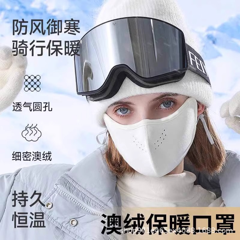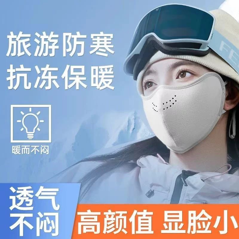 2024新型保温マスク女子秋冬立体高颜値通気穴穴眼角防寒マスクベルベット