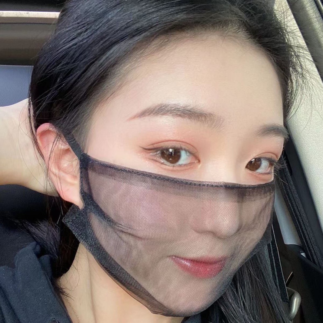 夏の氷糸マスク屋外で顔を隠す女性の通気性紫外線対策目尻の暑さ対策マスク