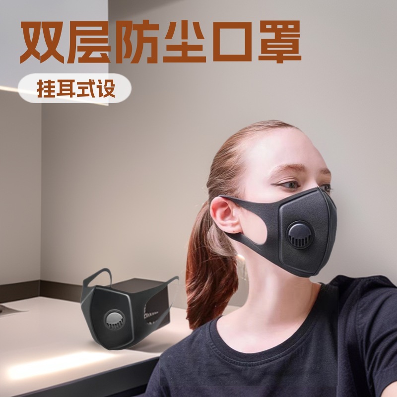 交換可能フィルター防塵マスク男性女性綿純色黒色フィルターバルブ防曇マスク通気dkz17