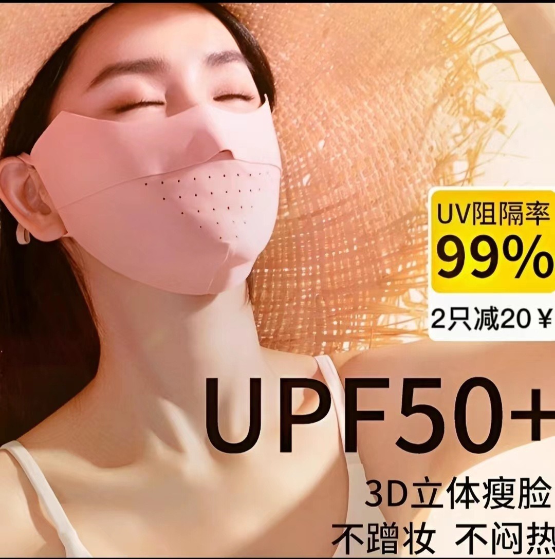日焼け止めマスク女性紫外線防止夏の薄い通気レース目尻保護立体顔マスク淘宝代発