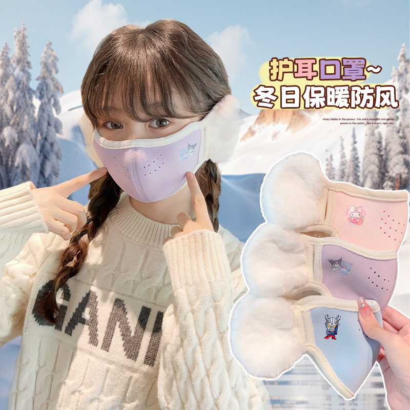 クロミ子供マスク耳カバー一体秋冬男女子供通学防風耳保温マスク水洗い可