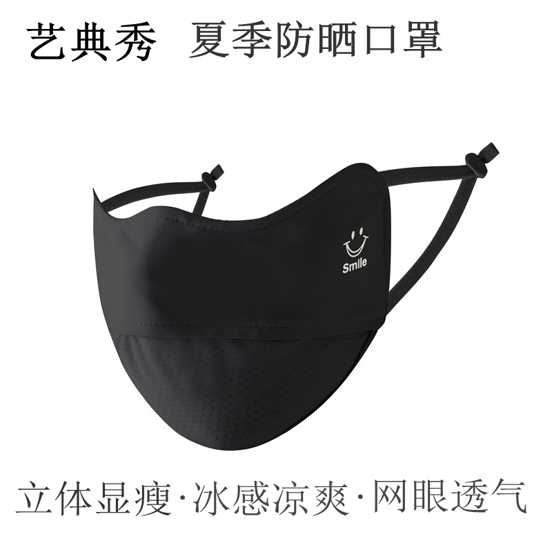 夏の笑顔日焼け止めマスク男女立体氷糸屋外日よけ騎乗眼角半メッシュ通気マスク