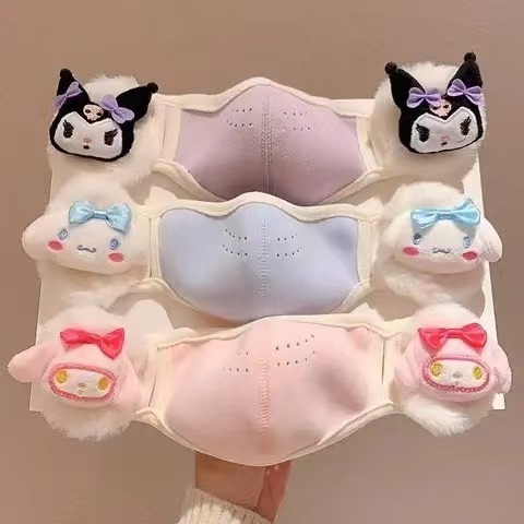 新型保温マスク耳カバー付き女性秋冬かわいいぬいぐるみ防風防寒耳マスク二合一マスク