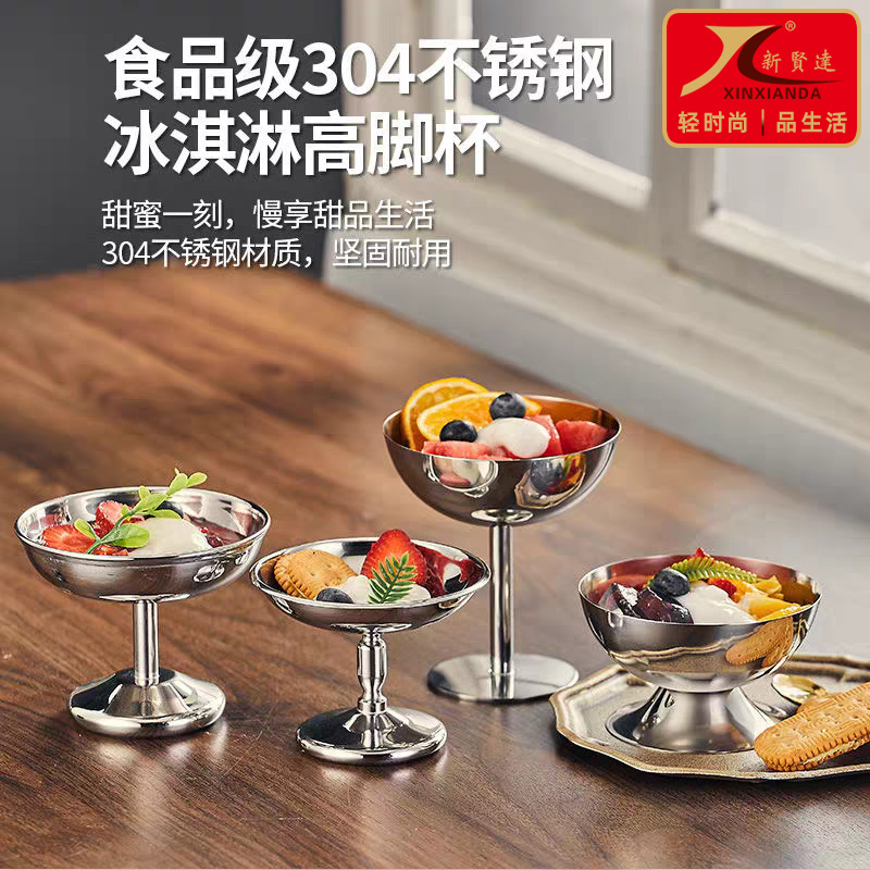 304 ステンレス鋼アイスクリームカップアイスクリームカッププディングカップ背の高いカクテルカップアイスクリームカップデザートボウル