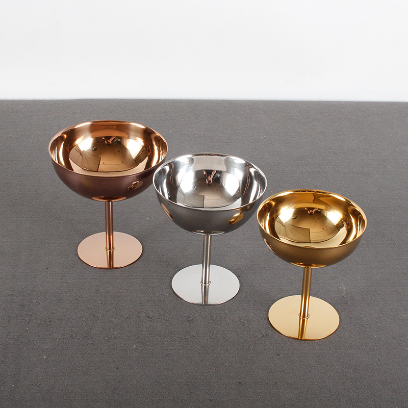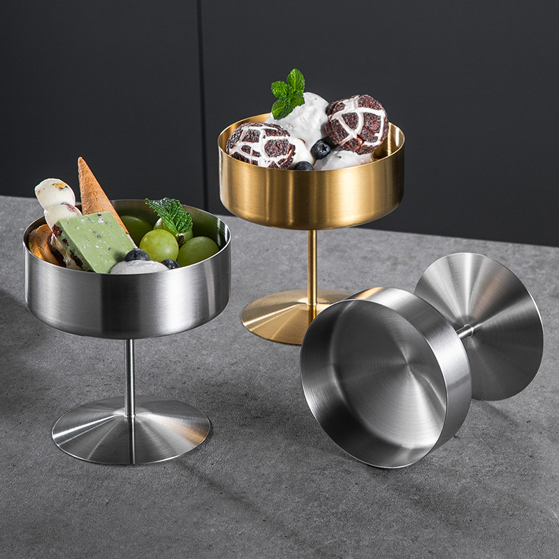 国境を越えた人気の304ステンレス鋼アイスクリームカップ、背の高いデザートカップ、プリンコーヒーカップ、アイスクリームカップ、ワインカップ