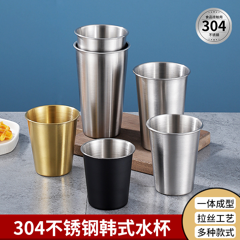 クロスボーダー304ステンレスコップ韓国式金色二重ビールカップレストランティーカップ子供カップ