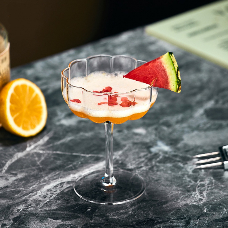 Ins高颜値ストライプフランス高脚シャンパンカップ気泡酒ガラスカップワインワインカクテルカップ