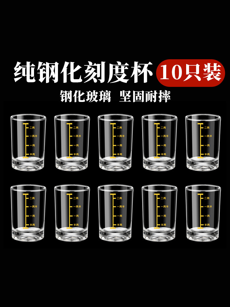 10個の強化ガラスを入れた2つの目盛りの白酒コップの家庭用セット