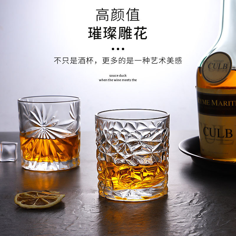 高颜値シンプルウイスキーガラス四方杯バービールグラス烈酒洋杯家庭用コップグラス