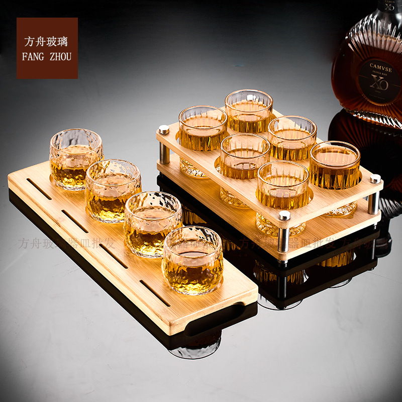 インスタイルの見栄えの良いバーテーブル、小さなビールカップ、一口カップ、家庭用ガラスウォーターカップ、小さなティーカップ、竹と木のカップホルダー