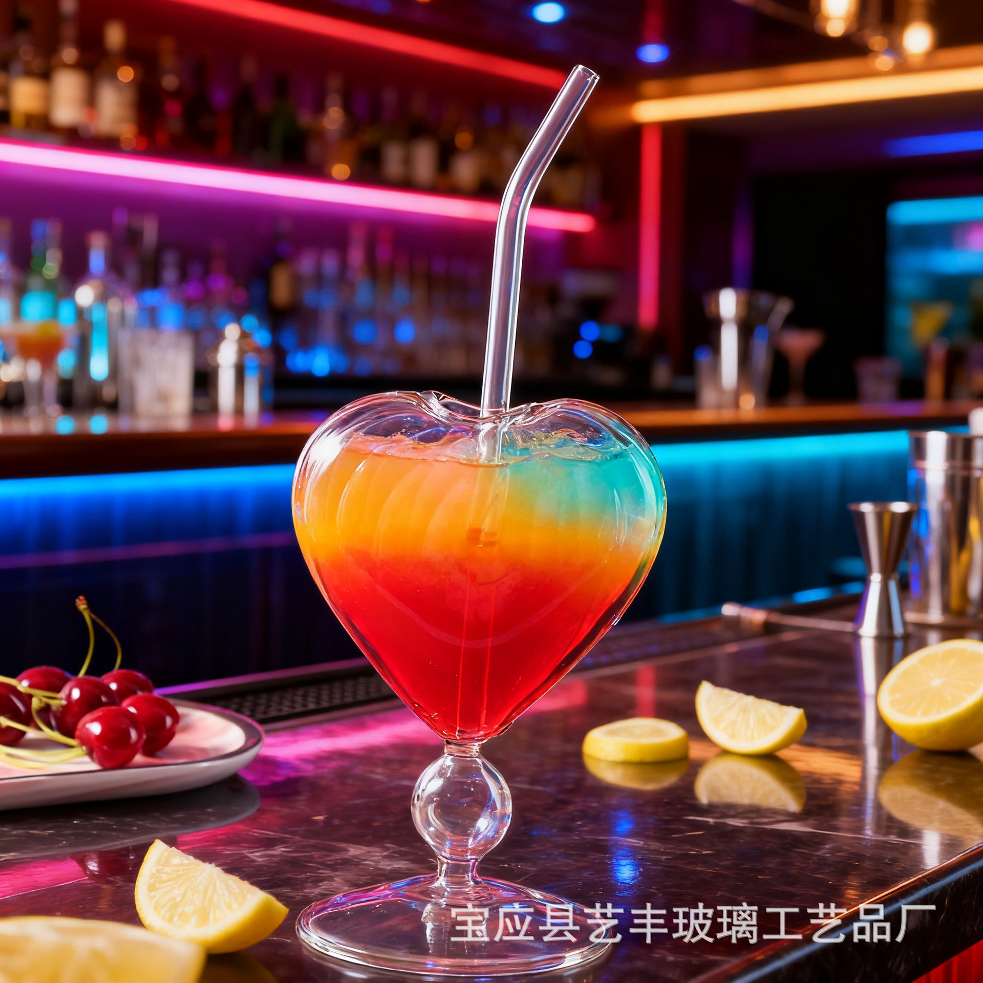メーカー愛カクテルカップ個性バーストライプハート型グラス創意和式ガラスグラス高足カップ