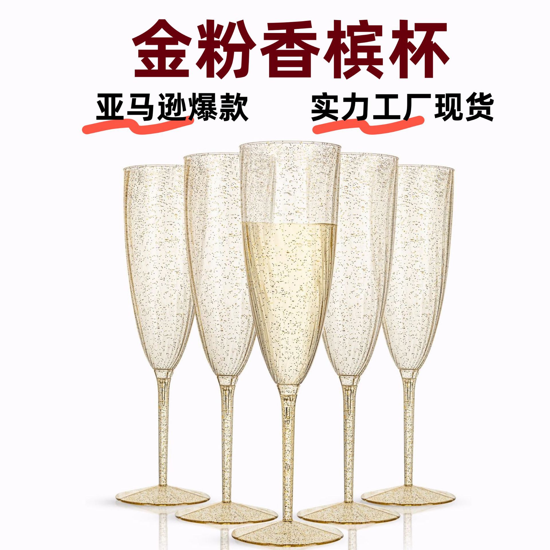 Amazonの人気の6オンスゴールドグリッターシャンパングラスPSプラスチックゴブレット赤ワインプラスチックゴールドパウダーワイングラス
