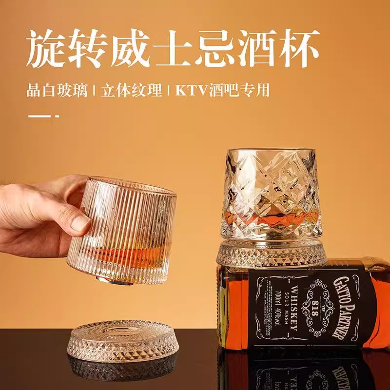 厚い回転水晶ガラス杯ins風北欧ウイスキーカップ創意個性洋酒タンブラーカップ