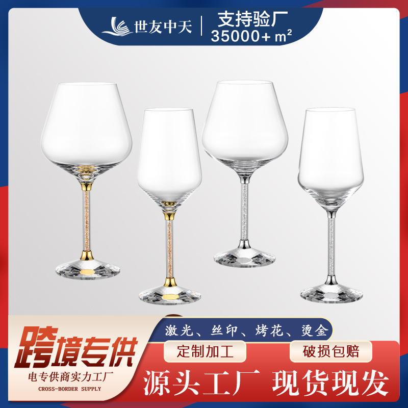 高級ワイングラス高足水晶ガラス金ドリル銀ドリルグラス家庭用商用回転水晶カップホルダー