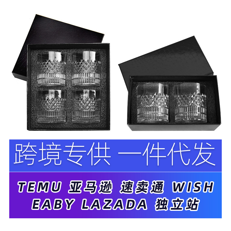 ギフトボックス4つのレリーフウイスキーカップセットヨーロッパ風ガラス洋杯バービールクロスボーダー2つの酒場