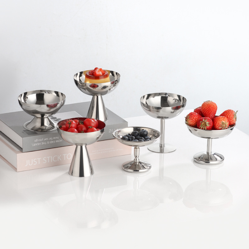 卸売 304 ステンレス鋼インターネット有名人アイスクリームカップ背の高いアイスクリームカップライト高級インスタイルデザートカッププディングカップ