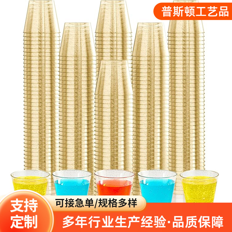 使い捨てのコップは金粉の杯の硬いプラスチックの杯の業務用の杯のジュースのデザートのムースの杯の航空杯のジュースの杯を厚くします。
