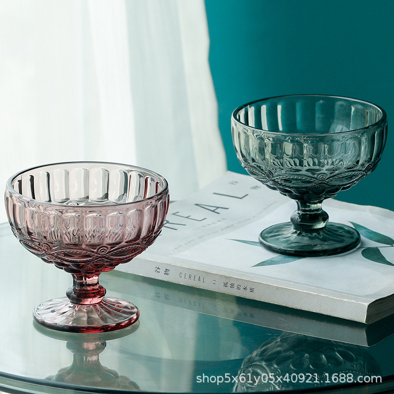 メーカー直供カラー原色アイスクリーム碗蛇紋カクテルグラスmojito高足カップグラス