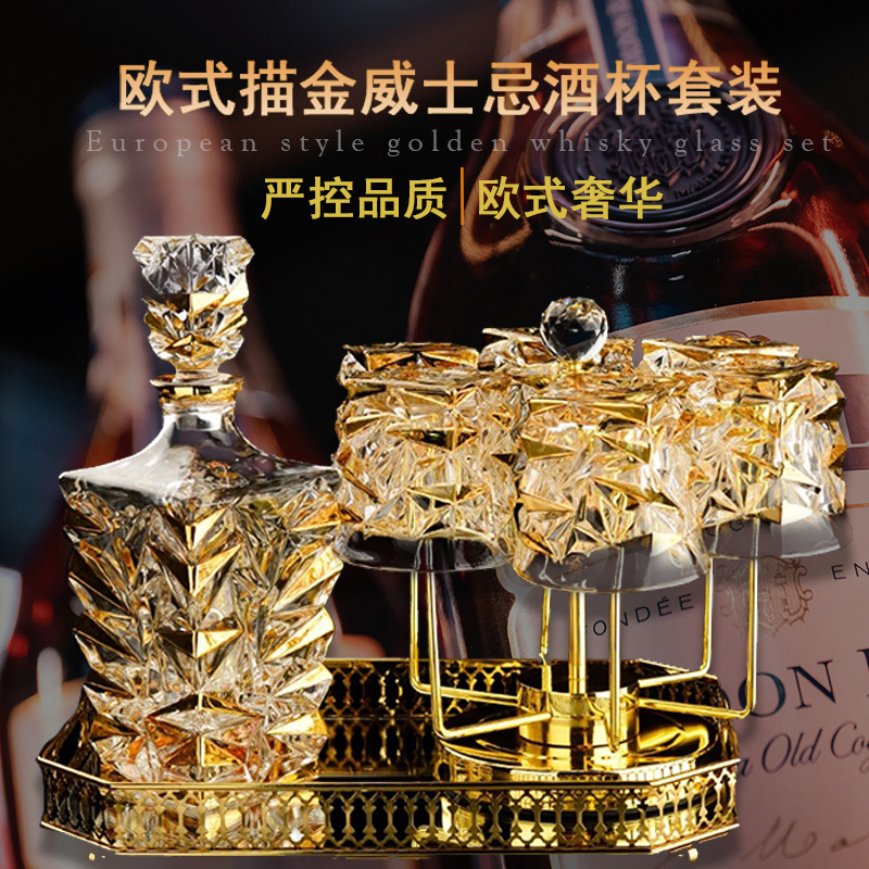 ウイスキーグラス洋酒カップヨーロッパ式水晶ガラスビールカップセット家庭用ダイヤモンドティーカップ創造性酒器