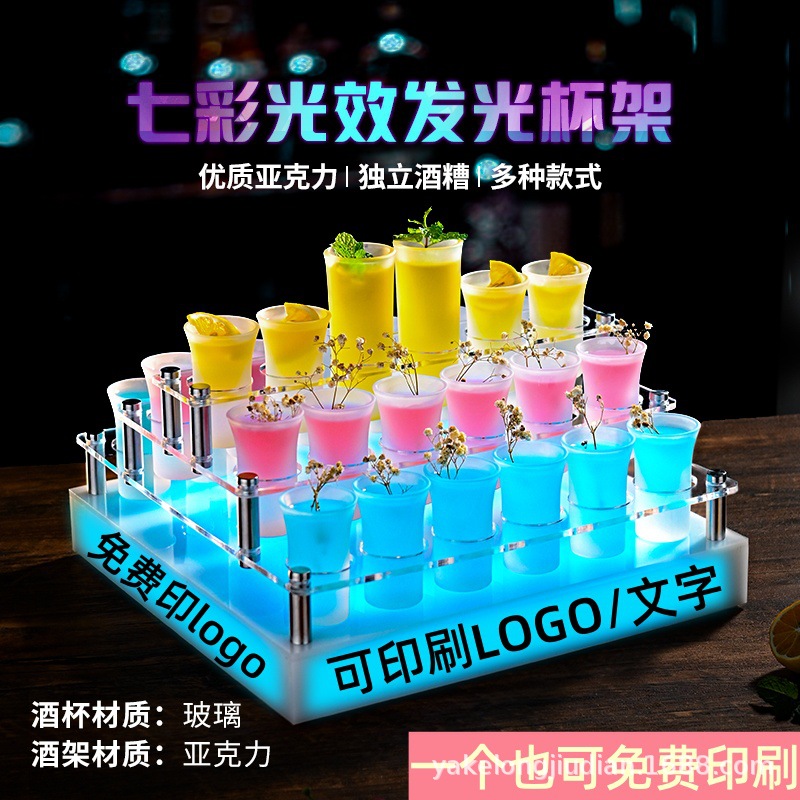 光るカクテルの杯の棚のつや消しの野格の杯の虹の闘酒の発光のb52カクテルの棚の発光の器具のセット