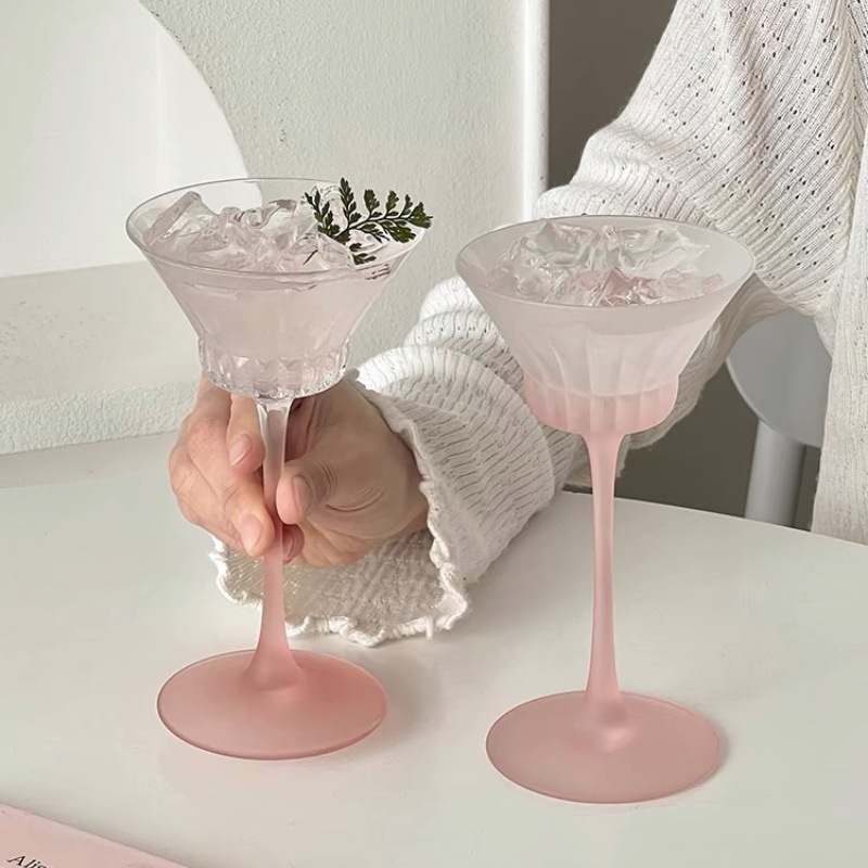 ピンクのフロスト高足カップ家庭用高颜値女子エッチンググラス特调ジュースほろ酔いカクテルカップ