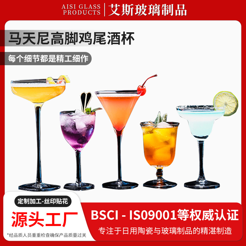 工場の商品はカクテルカップのネットの赤いコップのマティーニのバーの酒のコップの水晶のガラスの洋式の杯の印のロゴを直接出します。