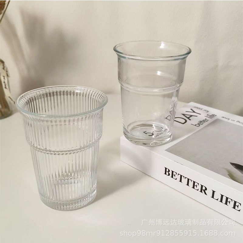 ネットレッドins風ガラスカップ透明ミルクティーカップ牛乳飲料ジュースカップ高脚精醸造ビールマグ北欧