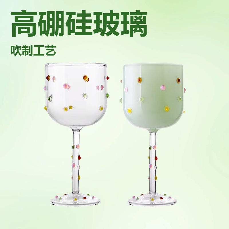 ネットレッドinsカラー砂糖豆ガラス高足カップクリエイティブ赤ワインワイングラス少女心高颜値ワイングラス