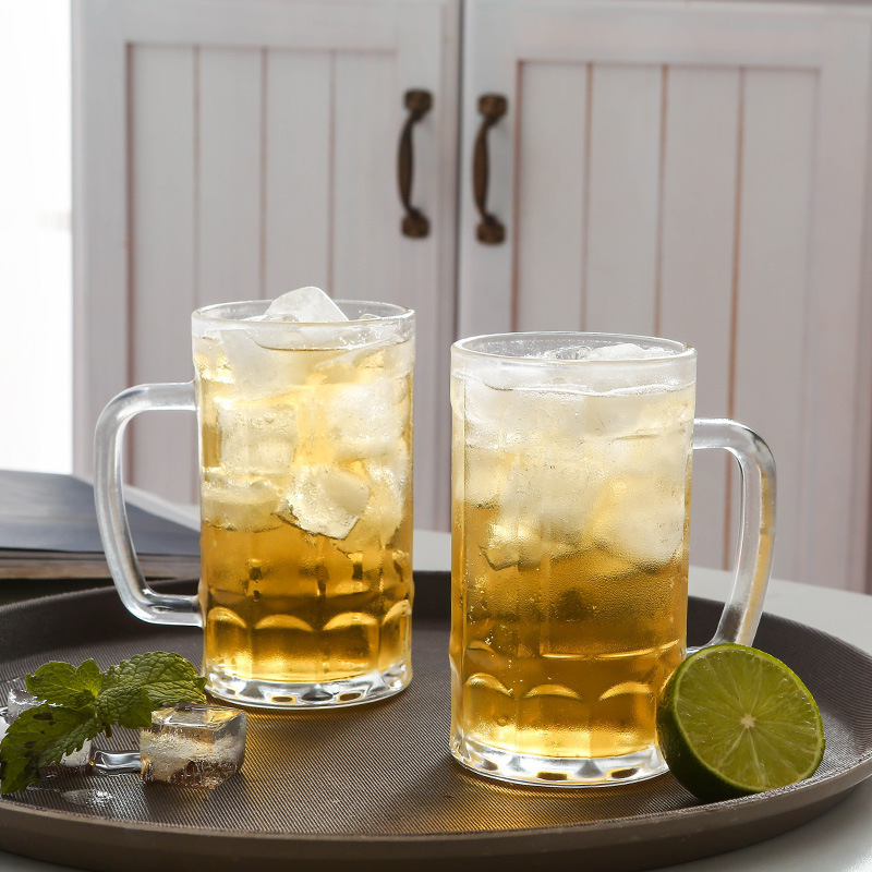 グラス家庭用ハンドル付きお茶オフィスビジネスカップシンプル透明大容量ビールマグ