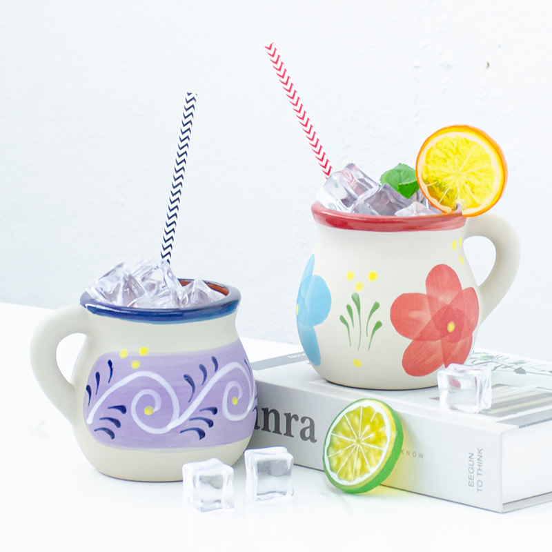 維増陶磁器のコップの赤土の個性の手描きは取っ手の牛乳の杯のカクテルの杯のビールの杯のアマゾンを持ちます。