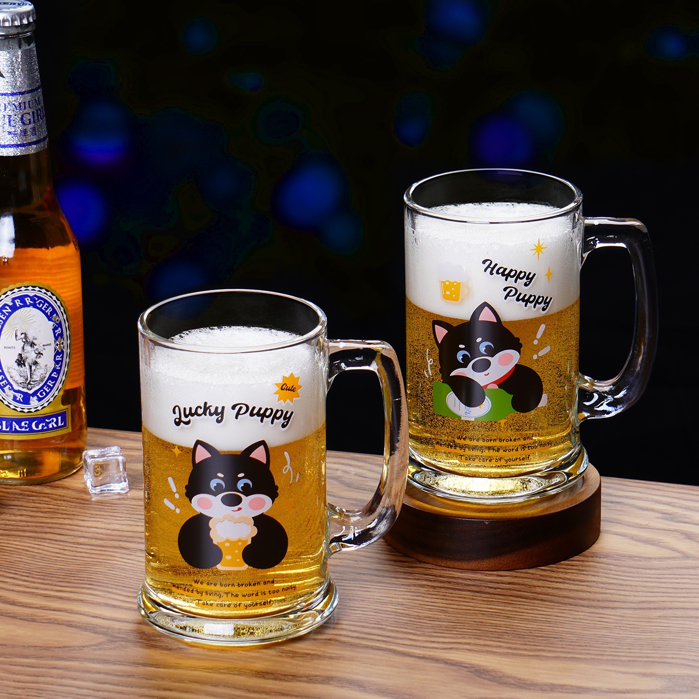クリエイティブな厚みのある漫画のガラスの商業ビールカップハンドル付きインターネット有名人の生ビールカップ多機能ジュースカップハンドルカップ