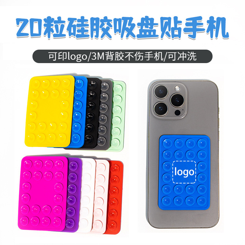 20個入り片面シリコン吸盤ステッカー、正方形多機能吸着、携帯電話・タブレット用、粘着テープ付き、強力吸着