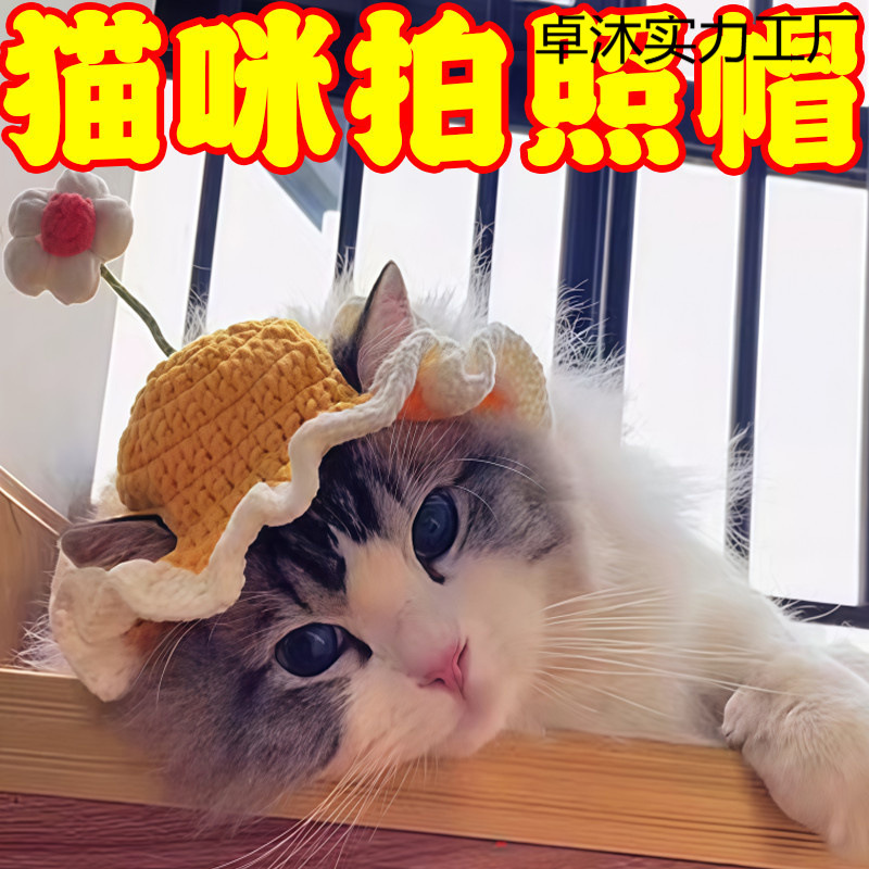 手織りの見栄えの良いかわいいペットの人形女装ヘッドギア波状つば猫と犬のユニバーサル帽子マジック接着剤