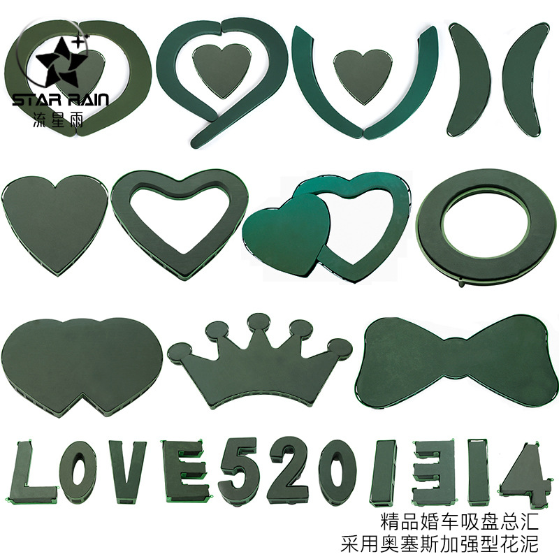 结婚车の装饰ハート形生け花泥お祝い结婚メイン车ヘッド花泥プラスチックパレット结婚祝い用品结婚车花泥