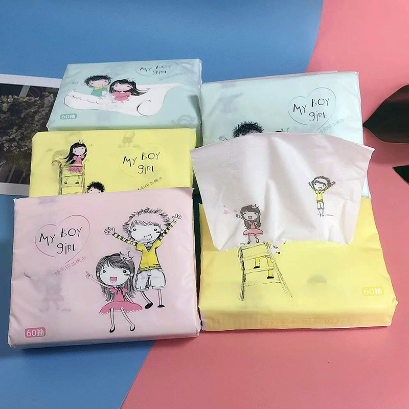 プリント引き紙男の子女の子プリント紙携帯小包カラーナプキン家庭用ティッシュトイレットペーパー