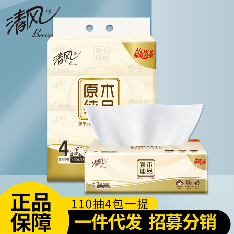 清風原木純品ティッシュ卸売り家庭服110吸引4包衛生ティッシュ家庭用実恵紙ティッシュ紙