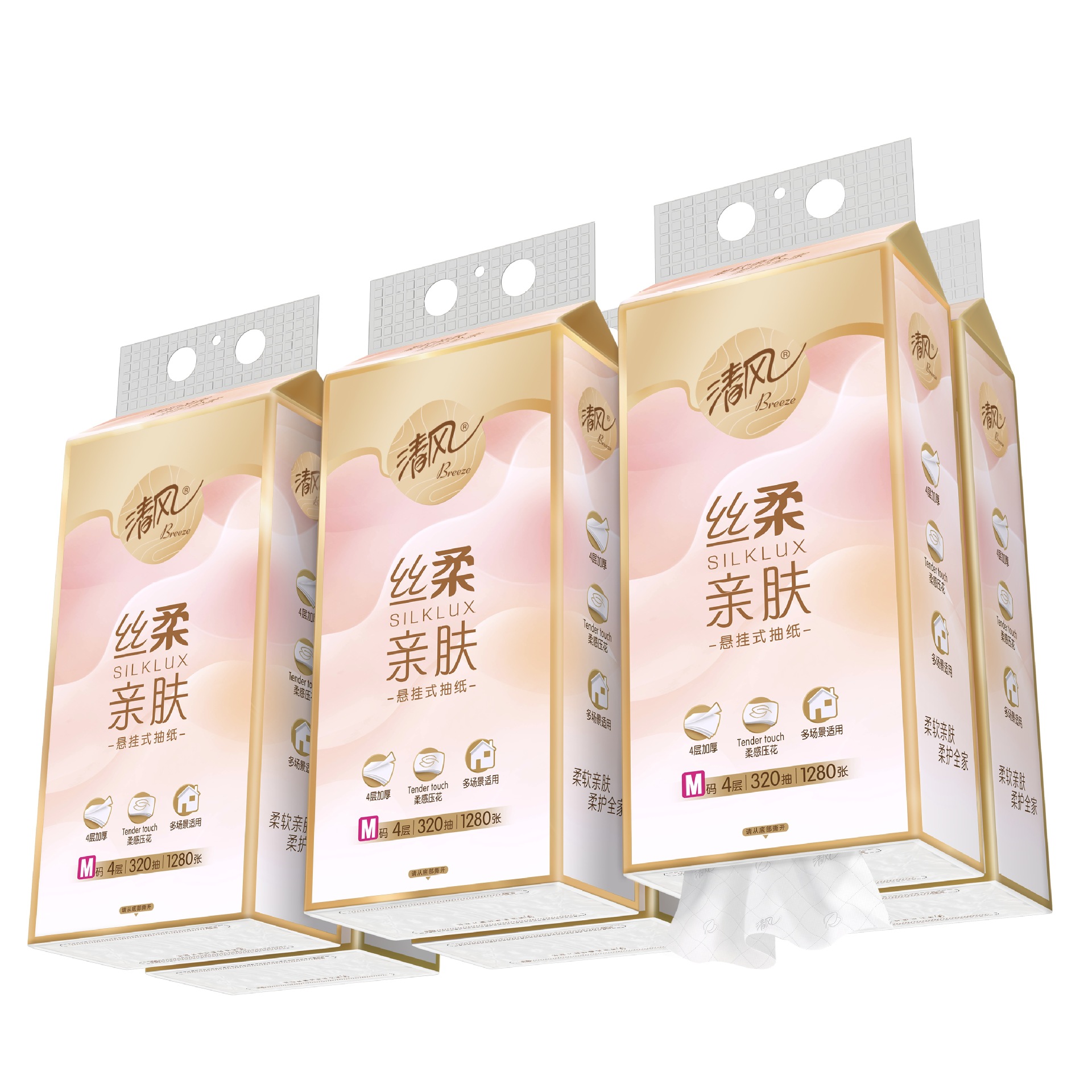 Qingfeng シルクソフトティッシュペーパー壁掛けペーパー 320 ティッシュ 4 パックお手頃なナプキンフェイシャルティッシュトイレットペーパー