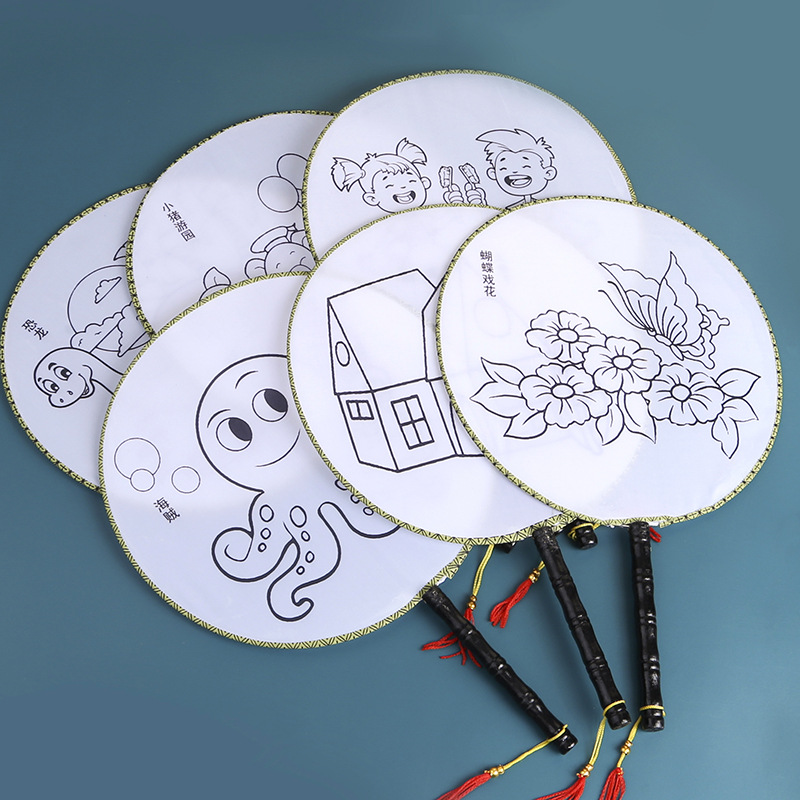 子供の漫画の塗り絵落書き宮扇円扇diy絵団扇空白宮扇幼稚園手作り