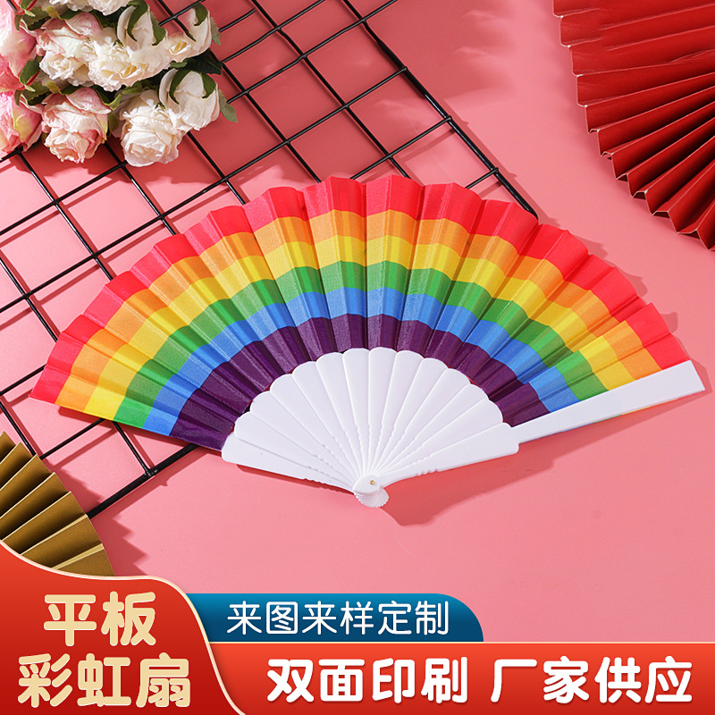 9インチのタブレットの虹の扇子のプラスチックのダンスの扇子は扇風機をたたんでロゴの国の潮の両面の刺繍の挿絵の扇風機を印刷することができます。