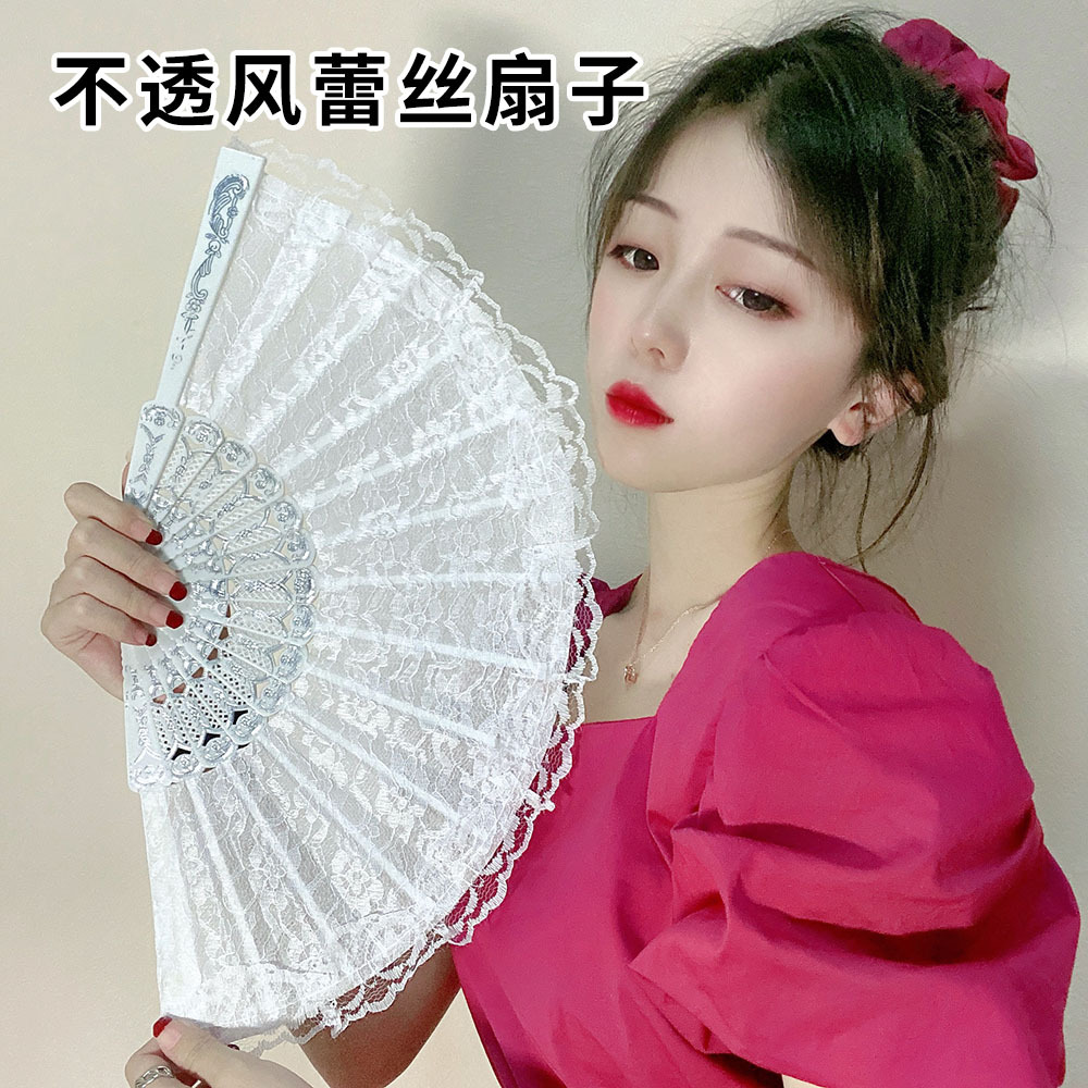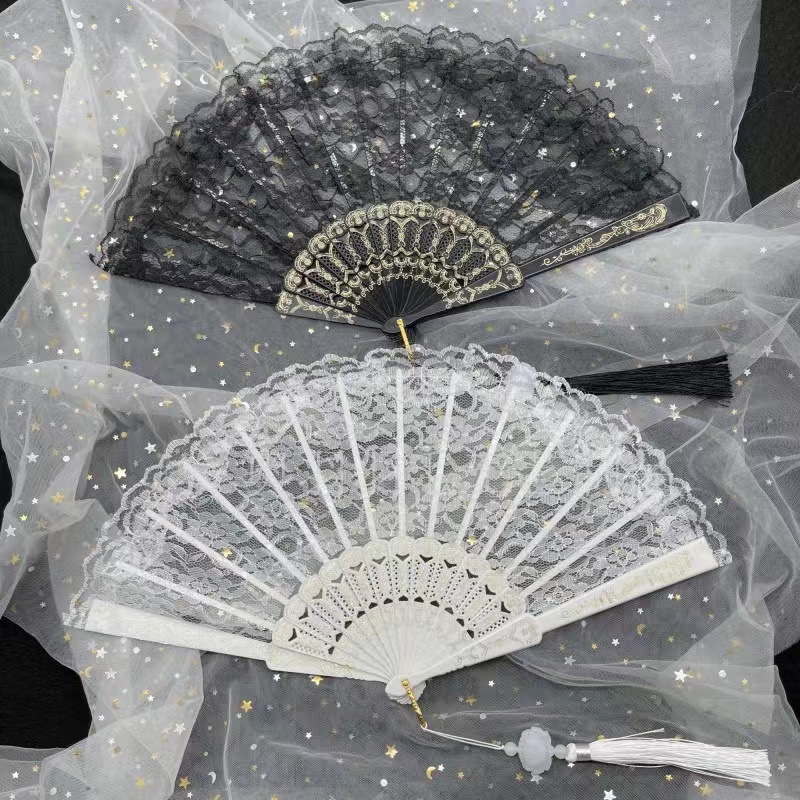 新中国式レトロ黒色レース扇風機jkロリータ漢服チャイナドレス扇子流蘇古風写真撮影道具潮