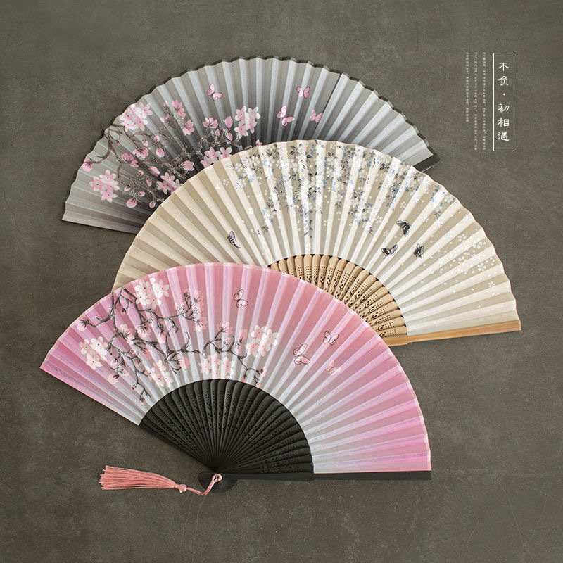 中国風漢服折り畳み布扇子折り扇子女復古風踊り地露店観光地区工芸品小竹扇子