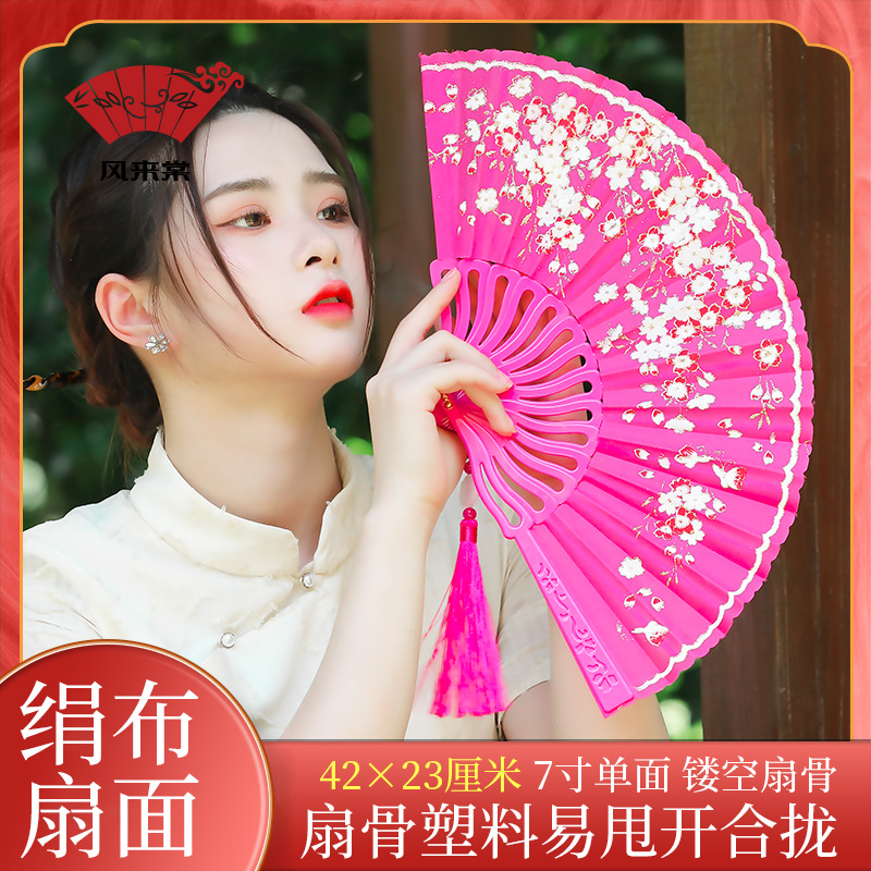 中国風女性7寸娟布折扇竜骨竹扇刀扇大刀扇プレゼント展示ダンス扇子卸売り