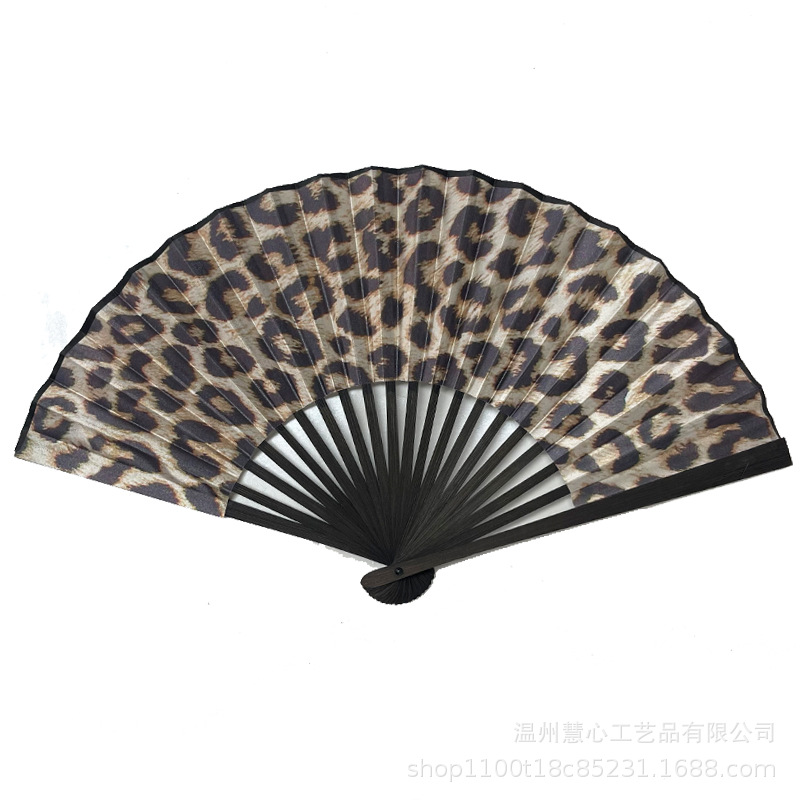 国境を越えた既製ヨーロッパとアメリカのスタイルのヒョウ柄スカルプリント竹扇子ストレートボーン扇子黒骨小型扇子